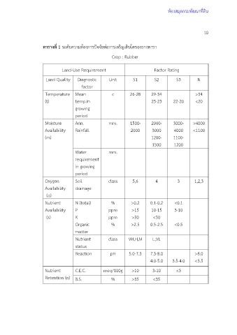 ตารางที่ 1 ระดับความต้องการปัจจัยต่อการเจริญเติบโตของยางพารา