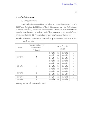 ตารางที่ 3 ความแตกต่างเส้นรอบวงของต้นยางพาราที่ความสูง 150 เซนติเมตร ระหว่างปี พ.ศ.2557