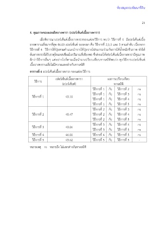 ตารางที่ 6 เปอร์เซ็นต์เนื้อยางพารา ของแต่ละวิธีการ