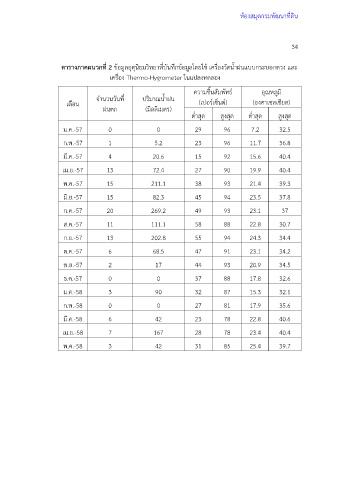 ตารางภาคผนวกที่ 2 ข้อมูลอุตุนิยมวิทยาที่บันทึกข้อมูลโดยใช้ เครื่องวัดน้ําฝนแบบกระบอกตวง และ