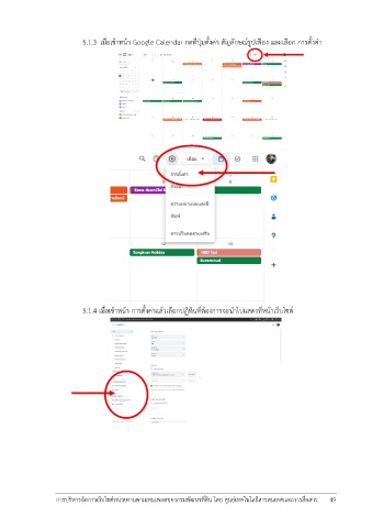 5.1.3 เมื่อเข้าหน้า Google Calendar กดที่ปุ่มตั้งค่า สัญลักษณ์รูปเฟือง และเลือก การตั้งค่า